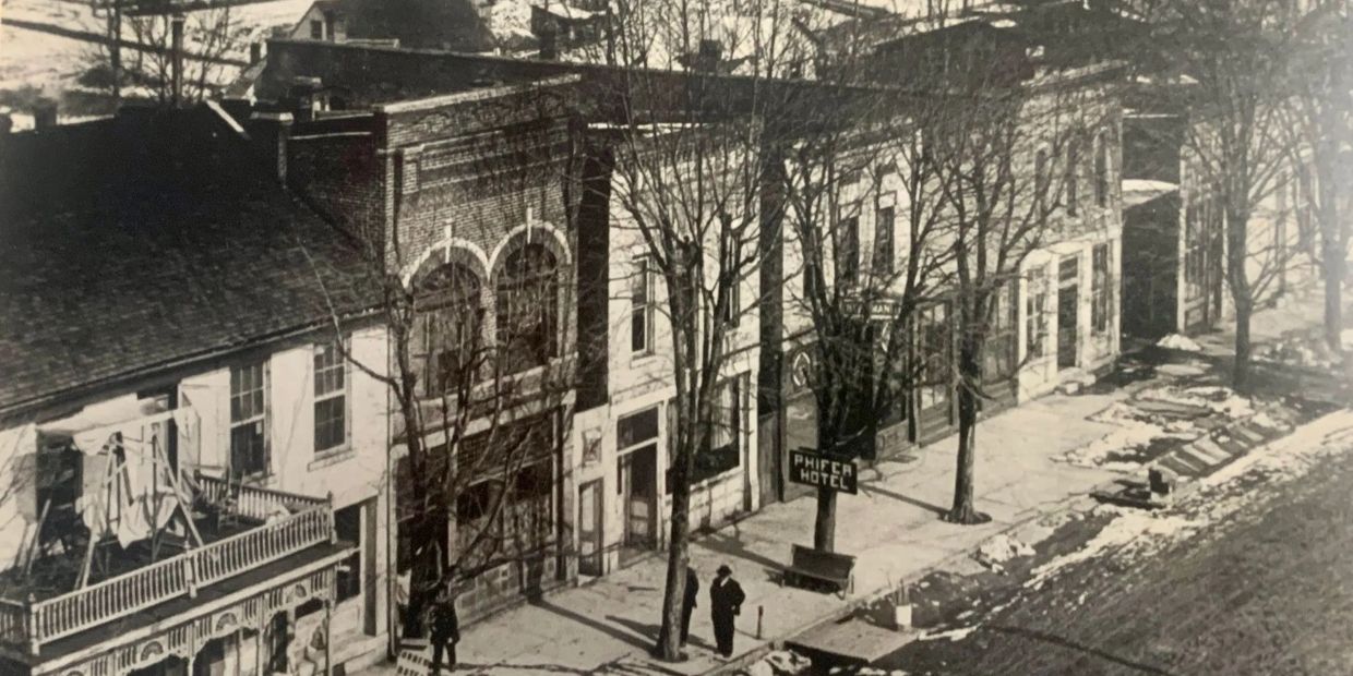 The storefront of 111 East Walnut, originally known as the Walker & Ireland Storehouse in the 1880s, was used for a saloon during the late 1800s into the early 1900s. By 1915, the building became known as the Commercial Hotel. The second story had been used as a lodge hall for the Independent Order of Odd Fellows, who built a new hall in 1906 on Main Street. By the middle part of the 20th century, the building became home to Greger Brothers Hardware Store.